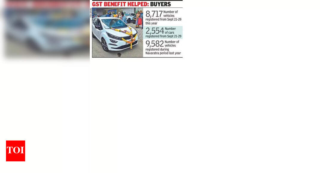 पुणे: पुणे आरटीओच्या कार्यक्षेत्रातील वाहन नोंदणी गेल्या वर्षी संबंधित कालावधीच्या आकडेवारीला मागे टाकण्याची शक्यता आहे, असे अधिका said ्यांनी सांगितले. परिवहन प्राधिकरणाने २१-२ सप्टेंबरपासून 8,717 वाहनांची नोंदणी केली आहे, ज्यामुळे यावर्षी दशारा होईल.सोमवारी संध्याकाळी आरटीओने नवरात्रा कालावधीत वाहन नोंदणीसाठी आकडेवारी जाहीर केली.या कालावधीत तब्बल 2,554 कार नोंदणीकृत झाल्या.मॉर्थच्या वाहान पोस्टलनुसार पुणे आरटीओमध्ये एकूण नोंदणीकृत वाहनांची लोकसंख्या 42 लाख आहे.“गेल्या वर्षी, 1 ऑक्टोबरपासून पुणे आरटीओने ,, 582२ वाहने नोंदविली. आमच्याकडे दशाराकडे आणखी दोन दिवस आहेत आणि शेवटचे काही दिवस सामान्यत: उच्च नोंदणी पाहतात. आम्ही यावर्षीच्या वाहन नोंदणीच्या आकडेवारीत मागील वर्षाच्या संख्येला मागे टाकण्याची अपेक्षा करीत आहोत, असे आरटीओच्या अधिका official ्याने नाव न सांगण्याच्या अटीवर सांगितले.इलेक्ट्रिक वाहने (ईव्हीएस) विभागात, तब्बल 814 वाहने, प्रामुख्याने दुचाकी वाहने या नवरत्रात नोंदणी केली. मागील वर्षी, याच कालावधीत (1 ऑक्टोबर 1-9), 1,025 ईव्ही नोंदणीकृत होते.“आम्ही ईव्ही नोंदणींमध्येही लक्षणीय वाढीची अपेक्षा करीत आहोत. उत्सवाच्या हंगामात नोंदणीकृत इलेक्ट्रिक वाहनांची संख्या कमी झाली आहे, परंतु जीएसटी कमी झाल्यामुळे आम्ही ते वाढण्याची अपेक्षा करतो. यामुळे ईव्हीची किंमत कमी होईल आणि विक्री वाढेल,” अधिका said ्याने सांगितले.जीएसटीच्या फायद्यांचा फायदा घेण्यासाठी रहिवासी उत्साहित आहेत आणि शुभ दिवसांपैकी एक दसारावर वाहन वितरित करण्याची योजना आखत आहेत. “मी माझ्या मुलीसाठी दुचाकी विकत घेतली आहे आणि दसारावर वाहनाची डिलिव्हरी घेईन. तिने यावर्षी महाविद्यालय सुरू केले आणि बाईक तिच्यासाठी चांगली होईल. जीएसटीच्या लाभामुळे किंमत लक्षणीय प्रमाणात खाली आणली,” उन्डी कमकर यांनी सांगितले, उन्नाचे रहिवासी आणि आयटी व्यावसायिक. काहींसाठी, उत्सवाची गर्दी म्हणजे त्यांच्या पसंतीच्या वाहनाची मर्यादित उपलब्धता.मगरपट्टा येथील रहिवासी आणि व्यवसायाने उद्योजक असलेल्या पालक गोकुले यांनी टीओआयला सांगितले की, “मी हॅचबॅक कार बुक केली आहे, परंतु वाहन विक्रेत्याने सांगितले की मोठ्या संख्येने बुकिंगमुळे दिवाळीपूर्वी वितरण शक्य होणार नाही. मी दशारावर वितरण करण्याची विनंती केली आहे, परंतु ते अतुलनीय आहे.”उत्सवाच्या हंगामात डिलिव्हरीसाठी पित्रू पक्का सुरू होण्यापूर्वी अरविंद करादने आपली कार बुक केली. “माझ्याकडे दुचाकीस्वार आहेत पण मला स्वत: साठी एक कार खरेदी करायची होती. मी लवकर वाहन बुक केले आणि त्याची वितरण उशीर केला. मला धन्तेरेस पर्यंत थांबण्याची इच्छा होती, परंतु माझ्या क