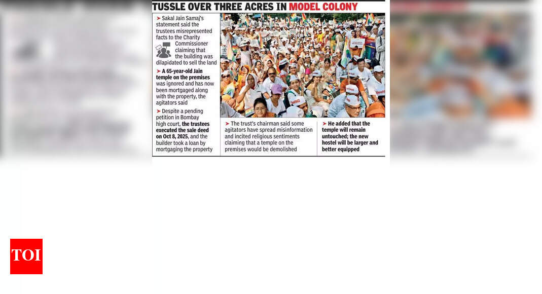 पुणे : मॉडेल कॉलनी येथील सेठ हिराचंद नेमचंद स्मारक ट्रस्टच्या मालमत्तेच्या विक्रीला विरोध करण्यासाठी सकल जैन समाजाच्या गटाने शुक्रवारी लाँग मार्च काढला. आंदोलकांपैकी अक्षय जैन म्हणाले की, वसतिगृहाची जमीन, ज्यामध्ये मंदिर देखील आहे, ती योग्य प्रक्रिया न करता विश्वस्तांनी विल्हेवाट लावली. “निधी उभारणीसाठी समुदायापर्यंत पोहोचण्यासारखे पर्याय उपलब्ध होते, परंतु विश्वस्तांनी जमीन विकली,” ते पुढे म्हणाले. शेतकरी नेते आणि माजी खासदार राजू शेट्टी यांनीही आंदोलनात सहभाग घेतला.विश्वस्तांनी सर्व आरोप फेटाळून लावले आहेत. ट्रस्टचे अध्यक्ष चकोर दोशी म्हणाले, “मालमत्ता विकण्याचा निर्णय वैयक्तिक फायद्यासाठी नाही, तर ट्रस्टच्या उद्दिष्टांना पुढे नेण्यासाठी घेण्यात आला आहे. पारदर्शक आणि कायदेशीर प्रक्रियेचे पालन करण्यात आले. बोर्डाने 16 डिसेंबर 2024 रोजी एक ठराव पारित केला,” तो पुढे म्हणाला.सकल जैन समाजाच्या निवेदनात म्हटले आहे की त्यांनी तीन एकर मालमत्तेची बेकायदेशीर विक्री केल्याचा आरोप करत ट्रस्टींविरूद्ध औपचारिक तक्रार दाखल केली आहे. निवेदनात असा आरोप आहे की विश्वस्तांनी इमारत जीर्ण असल्याचा दावा करून जमीन विकण्याची परवानगी मिळविण्यासाठी महाराष्ट्राच्या धर्मादाय आयुक्तांना तथ्ये चुकीची सांगितली. निवेदनात जोडण्यात आले आहे की, आवारातील 65 वर्षीय जैन मंदिराकडे दुर्लक्ष करण्यात आले आणि आता ते मालमत्तेसह गहाण ठेवण्यात आले आहे. मुंबई उच्च न्यायालयात प्रलंबित याचिका असूनही, ट्रस्टींनी 8 ऑक्टोबर 2025 रोजी विक्री करार केला आणि बिल्डरने मालमत्ता गहाण ठेवून कर्ज घेतले.यापुढे विकास किंवा पाडकामासाठी परवानगी देऊ नये, अशी मागणी आंदोलकांनी केल्याचे निवेदनात म्हटले आहे. मालमत्तेची सद्यस्थिती टिकवून ठेवण्यासाठी आणि पुरावा नष्ट होऊ नये यासाठी स्थगिती आदेश जारी केला जावा. “जमीन परत मिळवण्यासाठी जोपर्यंत लागेल तोपर्यंत आम्ही लढा देऊ. या कराराला पाठिंबा देणाऱ्या सरकारी अधिकाऱ्यांचाही आम्ही निषेध करतो,” असे शेट्टी म्हणाले.विश्वस्तांनी आपल्या निवेदनात म्हटले आहे की, गुलाबचंद हिराचंद आणि लालचंद हिराचंद यांनी 1958 मध्ये धर्माचा विचार न करता गरजू आणि वंचित विद्यार्थ्यांना वसतिगृह आणि शैक्षणिक सुविधा देण्यासाठी ट्रस्टची स्थापना केली होती. त्यांनी जोडले की 20 डिसेंबर 2024 रोजी चार वृत्तपत्रांमध्ये जाहिरातीद्वारे सार्वजनिक निविदा मागविण्यात आल्या होत्या. गोखले लँडमार्क्स एलएलपीने सर्वोच्च आणि सर्वात योग्य बोली सादर केली होती, जी 27 जानेवारी 2025 रोजी स्वीकारण्यात आली होती. 4 एप्रिल 2025 रोजी धर्मादाय आयुक्तांनी 52,000 चौरस फूट (सध्याच्या 18,200 चौरस फूट पेक्षा 2.8 पट मोठे) न
