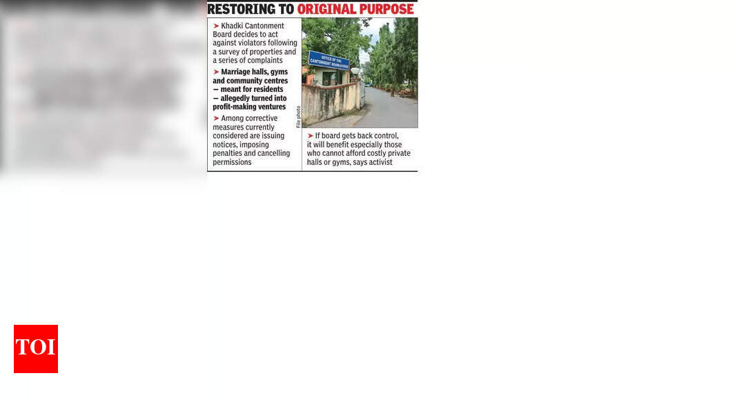 पुणे: स्थानिक रहिवाशांच्या फायद्यासाठी मूळतः विकसित केलेल्या सार्वजनिक मालमत्तेचे व्यावसायिक शोषण करणाऱ्या व्यक्ती आणि संस्थांवर कठोर कारवाई करण्याचा निर्णय खडकी कॅन्टोन्मेंट बोर्डाने (KCB) घेतला आहे. बोर्डाच्या अधिकारक्षेत्रातील मालमत्तेचे सर्वेक्षण आणि लोकांनी नोंदवलेल्या तक्रारींच्या मालिकेनंतर हे पाऊल उचलण्यात आले आहे. गेल्या दशकभरात आमदार स्थानिक क्षेत्र विकास योजनेंतर्गत उपलब्ध झालेल्या निधीतून कॅन्टोन्मेंटच्या जमिनीवर विवाह हॉल, जिम, कम्युनिटी सेंटर आणि मंदिरे बांधण्यात आली आहेत. तथापि, अधिकाऱ्यांनी सांगितले की, मूळ हेतू खराब झाला आहे, यापैकी अनेक जागा व्यावसायिक फायद्यासाठी खाजगी व्यक्तींद्वारे चालवल्या जात आहेत.केसीबीच्या मुख्य कार्यकारी अधिकारी मनीषा लोहिया यांनी या घटनेला दुजोरा दिला. “या सुविधा अशा रहिवाशांना मदत करणार होत्या ज्यांना अन्यथा अशा पायाभूत सुविधांचा अभाव आहे. परंतु आम्हाला जास्त शुल्क आकारणे आणि गैरवापर करण्याबाबत अनेक तक्रारी प्राप्त होत आहेत. यानंतर, बोर्डाने सर्वेक्षण केले आणि उल्लंघने शोधून काढली. उल्लंघन करणाऱ्यांवर आता कठोर आणि योग्य कारवाई केली जाईल,” तिने TOI ला सांगितले.रहिवाशांनी या निर्णयाचे स्वागत केले आहे, असे म्हटले आहे की ते खूप प्रलंबित आहे. “या सुविधा लोकांसाठी होत्या. पण समाजाला मदत करण्याऐवजी ते पैसे कमविण्याचे धंदे बनले आहेत. कॅन्टोन्मेंट बोर्डावर पुन्हा नियंत्रण आल्यास त्याचा सर्वांना फायदा होईल, विशेषत: ज्यांना महागडे खाजगी हॉल किंवा जिम घेणे परवडत नाही,” असे खडकीचे कार्यकर्ते शबाज सय्यद म्हणाले, जे गेल्या काही महिन्यांपासून KCB कडे तक्रारीचा पाठपुरावा करत आहेत.या तक्रारी प्रामुख्याने विवाह हॉल भाड्याने घेण्यासाठी किंवा जिम वापरण्यासाठी आकारल्या जाणाऱ्या अवाजवी दरांभोवती फिरतात, जे सुरुवातीला कमीत कमी खर्चात प्रवेश करण्यायोग्य होते, असे बोर्ड अधिकाऱ्यांनी सांगितले. काही प्रकरणांमध्ये, मालमत्ता कथितरित्या खाजगी ऑपरेटर्सना अनौपचारिकपणे भाडेतत्त्वावर देण्यात आल्या होत्या ज्यांनी त्यांना व्यावसायिक उपक्रम मानले. बोर्डाने सुधारात्मक उपायांची यादी तयार करण्यास सुरुवात केली आहे, ज्यामध्ये नोटीस जारी करणे, दंड आकारणे आणि उल्लंघन गंभीर असल्याचे आढळल्यास परवानग्या रद्द करणे समाविष्ट आहे.अधिका-यांनी सांगितले की या क्रॅकडाउनमुळे एक मजबूत संदेश जाईल. “हे उत्तरदायित्वाबद्दल आहे. आम्ही सार्वजनिक पैशाने बनवलेल्या सुविधांना खाजगी उद्योग होऊ देऊ शकत नाही. लोकांना लाभ मिळायलाच हवा,” लोहिया म्हणाले. KCB हा शिवाजीनगर विधानसभा मतदारसंघांतर्गत येतो आणि त्यात रेंज हिल्स, खडकी बा