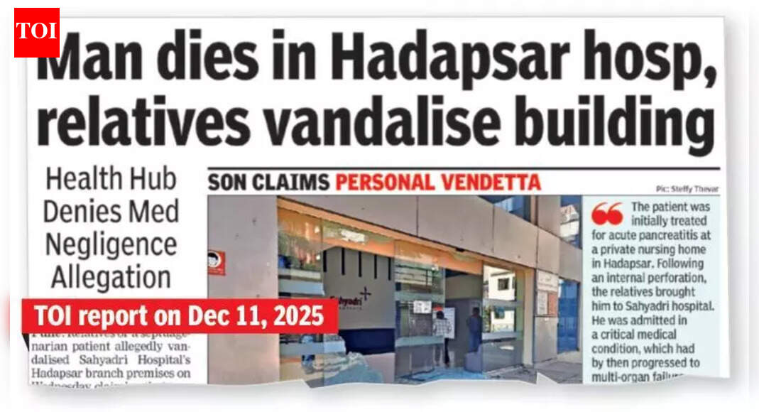 पुणे : सह्याद्री हॉस्पिटलच्या हडपसर शाखेच्या खिडक्या आणि काचेची तोडफोड करणाऱ्या चौघांना पोलिसांनी बुधवारी रात्री अटक केली. कुणाल हणमंत सपकाळ (३०), गौरव गणेश सपकाळ (२२), शुभम संजय सपकाळ (२५) आणि विश्वजित कुंडलिक कुमावत (२३, सर्व रा. सय्यदनगर, काळेपडळ) अशी अटक करण्यात आलेल्या चौघांची नावे असल्याचे हडपसर पोलिसांचे वरिष्ठ निरीक्षक संजय मोगले यांनी सांगितले. “सपकाळ हे मृत व्यक्तीचे नातेवाईक आहेत, तर कुमावत हे तिघांचे मित्र आहेत.”त्यांच्या वैद्यकीय तपासणीनंतर चौघांना गुरुवारी दुपारी कॅन्टोन्मेंट कोर्टात हजर करण्यात आले, त्यांनी त्यांची जामिनावर सुटका केल्याचे मोगले यांनी सांगितले. “आम्ही आठ लोकांविरुद्ध मानवी जीवन किंवा वैयक्तिक सुरक्षा, गैरप्रकार, बेकायदेशीर संमेलन आणि भारतीय न्याय संहितेच्या सामान्य वस्तूला धोक्यात आणणारी अविचारी किंवा निष्काळजी कृत्य या कलमांखाली एफआयआर नोंदवला. महाराष्ट्र मेडिकेअर सर्व्हिस पर्सन आणि मेडिकेअर सेवा संस्था (हिंसा प्रतिबंध आणि नुकसान किंवा तोटा) अंतर्गत आरोप,” पोलीस अधिका-याला देखील प्रोव्होकमध्ये म्हटले आहे.केरू सपकाळ (७७) यांचा बुधवारी मृत्यू झाल्यामुळे सह्याद्री हॉस्पिटल आणि तेथील डॉक्टरांवर वैद्यकीय निष्काळजीपणाचा गुन्हा दाखल करण्याची मागणी शिवसेनेच्या वैद्यकीय मदत कक्षाचे प्रमुख मंगेश चिवटे यांनी गुरुवारी केली.हडपसर येथील सपकाळ यांच्यावर पॅन्क्रियाटायटीसची शस्त्रक्रिया करण्यात आली होती. चिवटे यांनी या प्रकरणाची चौकशी करण्यासाठी स्वतंत्र वैद्यकीय मंडळाची मागणी केली. “मी शस्त्रक्रियेनंतर दोन दिवसांनी रुग्णाला भेटलो. तो बोलू शकत नव्हता पण हातवारे करून संवाद साधत होता. हा गंभीर गुन्हा आहे. आम्ही त्वरित चौकशीची मागणी करतो, असे त्यांनी पत्रकार परिषदेत सांगितले.सपकाळ यांना गंभीर अवस्थेत दाखल करण्यात आले होते आणि डॉक्टरांनी सर्व वैद्यकीय प्रोटोकॉल पाळले असतानाही त्यांचा मृत्यू झाल्याचे रुग्णालयाने बुधवारी सांगितले.त्यांच्या मृत्यूनंतर लगेचच सपकाळ यांच्या नातेवाईकांनी रुग्णालयाच्या इमारतीची तोडफोड केली आणि ते योग्य उपचार देण्यात अपयशी ठरले. “नातेवाईक आणि इतर मित्रांनी हॉस्पिटलवर दगडफेक केली, खिडकीच्या काचा आणि दरवाजाच्या काचा फोडल्या. या घटनेत कोणीही जखमी झाले नाही,” मोगले म्हणाले.