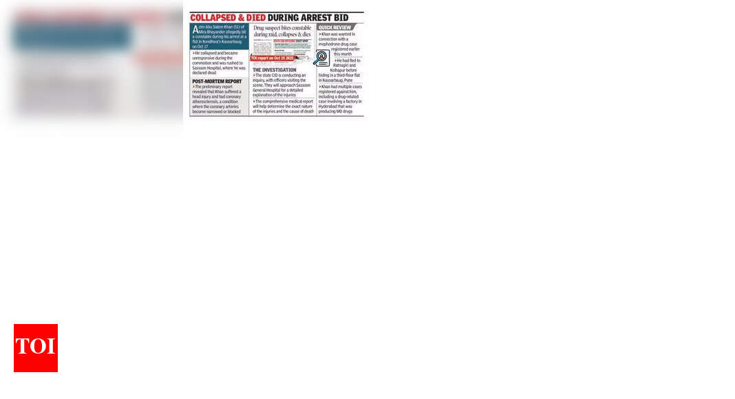 पुणे: कोंढव्याच्या कौसरबाग येथील फ्लॅटमध्ये ड्रग्जच्या गुन्ह्यात 17 ऑक्टोबर रोजी अटकेत असताना हवालदाराला चावा घेतल्याने खाली कोसळून मृत्यू झालेल्या मीरा भाईंदर येथील अझीम अबू सालेम